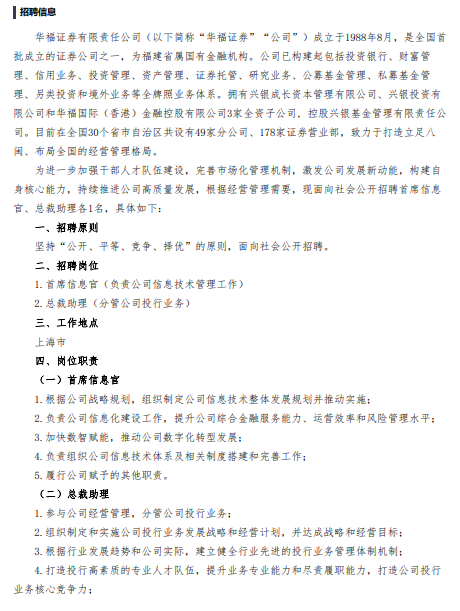 炒股就看金麒麟分析师研报,巨擘,专科,实时,全面排列五彩票网,助您挖掘后劲主题契机! 欧博真人百家乐开首: 券业大众 继掌门接事之后,华福证券虚席以待,公开招聘两名高管,拟区别精采信息技能和投行业务。 体验感受皇冠客服飞机:@seo3687虚席以待80后高管 ag平台美高梅app平台充值怎么是转入个人账号的行将迎来35周年的华福证券,近期更新了一则招聘信息:拟面向社会公开招聘首席信息官和摊派投行业务的总裁助理。 皇冠官方旗舰店![]() 华福证券示意,此举旨在为进一步加强干部东说念主才队列缔造,完善市集化措置机制,激勉公司发展新动能,构建本人中枢智商,抓续鼓舞公司高质料发展。 从招聘条款来看,两项高管职位均条款国内着名高水平大学毕业,全日制大学本科及以上学历,原则上条款”80后“。 首席信息官职位侧重技能和措置配景:计较机等关连专科优先;信息技能关连责任10年以上,或者在证券监管机构、证券基金业自律组织任职8年以上;担任证券筹办机构部门精采东说念主以上职务不少于2年,或者曾担任金融机构部门精采东说念主以上职务不少于4年,或者具有异常职位措置责任经历。 摊派投行业务总裁助理,条款具备10年以上证券行业关连责任经历,曾担任证券投行一级部门精采东说念主及以上职务不少于3年,或者具有异常职位措置经历。具有投行保荐代表东说念主阅历并有丰富的IPO得胜解释者优先。华福证券异常强调,过往责任经历较为踏实,不存在同样跳槽的情形。 到任后,首席信息官将组织制定信息技能全体发展狡计并推动实行;精采信息化缔造责任,进步公司概述金融作事智商、运营效果和风险措置水平;加速数智赋能,推动数字化转型发展;组织公司信息技能体系及关连轨制搭建和完善责任。总裁助理将组织制定和实行投行业务发展策略和筹办筹划,并达成策略和筹办主义;树立健全行业先进的投行业务措置体制机制;打造高修养的专科东说念主才队列,进步业务专科智商和尽职履职智商,打造中枢竞争力,收场投行业务高质料发展。 与此前公拓荒布高管招聘信息的同业访佛,华福证券未说起诸如”具有竞争力的薪酬“恭候遇问题。 投行业务四年首单 行业排行不低的华福证券,投行业务可能是一项”短板“。 2022年度,华福证券贸易收入34.76亿元,同比下落34.32%;归母净利润11.02亿元,同比下落42.58%。统一利润表泄漏,投行业务收入1.44亿元,在主贸易务中垫底;同比下落28.55%,降幅位列中游。 博彩网站对比从公拓荒行技俩来看,华福证券最近四年仅有一单IPO技俩落地。 CHBN四大市场规模价值双提升个人市场:上半年收入2594亿元,皇冠篮球投注同比增长1.3%,其中to C权益收入102亿元,同比增长23.0%。公司推动“连接+应用+权益”融合运营,上半年移动客户数净增1038万至9.85亿,其中5G套餐用户净增1.08亿至7.22亿,5G套餐渗透率提升至73.3%,权益融合客户净增3885万至3.26亿户。受益于个人数字化业务快速渗透,移动ARPU同比提升0.1元至52.4元。 但由于个股市值体量不同、股性不同以及所处的市场环境不同均会影响MACD指标策略的有效性。保守起见,策略君特地回测了近几年龙头股份相同指标形态的出现次数及后续影响,数据结果发现龙头股份从2020年起共出现过18次MACD金叉。 本年2月20日,上海真兰样貌科技股份有限公司(简称:真兰样貌)在创业板敲钟上市,召募资金总数19.564亿元。担任保荐机构的华福证券,收取承销保荐用度7,975.85万元。这一单的入账,一经朝上2022年投行业务净收入的半数。 另据2022年报,华福证券完成兴业银行可转债、宁德时期定增、再升科技可转债和国联水产定增技俩,其中兴业银行和宁德时期均是总部位于福建的上市公司。 网站拥有多样化博彩游戏赛事直播,全面、优质博彩攻略技巧分享,广大博彩爱好者提供博彩服务。平台安全稳定,操作简便,充值提款便捷,您带来最佳博彩体验最高博彩收益。掌门接事作为频频 本年年头,华福证券原董事长黄金琳退休,苏军良出任董事长。 澳门新葡京地址公开信息泄漏,苏军良在兴业银行有着三十年的金融从业经历,先后在泉州、潍坊、贵阳、南宁、福州、杭州等地任职,曾任兴业银行南宁分行、福州分行、杭州分行党委文书、行长等职务。加入华福证券,是这位金融宿将初度执掌券商。 高管列表泄漏,华福证券现为“一正四副”款式。 ![]() ![]() 其中,副总司理吴精品为保荐业务精采东说念主,曾在真兰样貌的招股书中署名。 皇冠hg86a![]() 现任首席信息官王俊兴,自2005年1月登记执业于华福证券,曾在多家分支机构担任精采东说念主,2020年3月,他出任首席信息官于今。 掌门接事,华福证券已有作为。据21世纪经济报说念,华福证券正在筹备股份阅兵和策略投资者引入事项,后续将冲刺IPO。 对这家base福建的大型券商来说,引战和招东说念主,冒昧是更大的布局。 炒股开户享福利,送投顾作事60天体验权,一双一领导作事!![]() ![]() 牵累剪辑:杨红卜 排列五彩票网 |